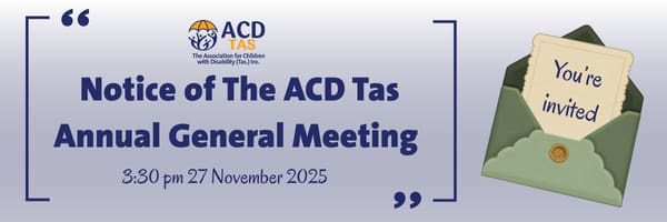On behalf of the ACD Tas Board of Management and Staff, thank you for your support of ACD Tas and the work we do alongside Tasmanian families and children and young people with disability.